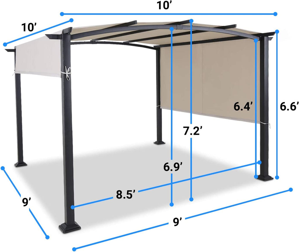 10' x 10' Steel Arched Pergola with Adjustable and Removable Canopy