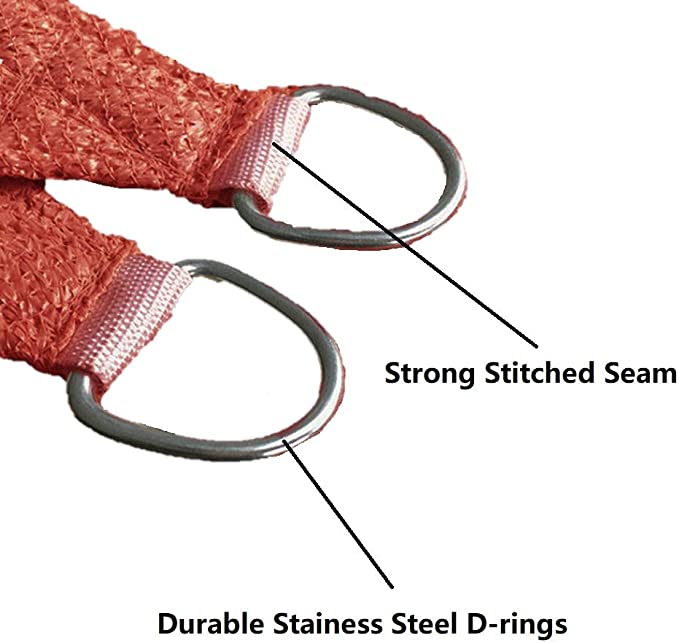 Easy to Use - Attach the shade sail D-rings to your structure with the included ropes. Four 5-feet ropes and an instruction sheet come in the package. Measurement is taken from D ring to D ring, Leave an 1.5-2 ft space between the fixing point and the shade sail to fit hardware or rope.