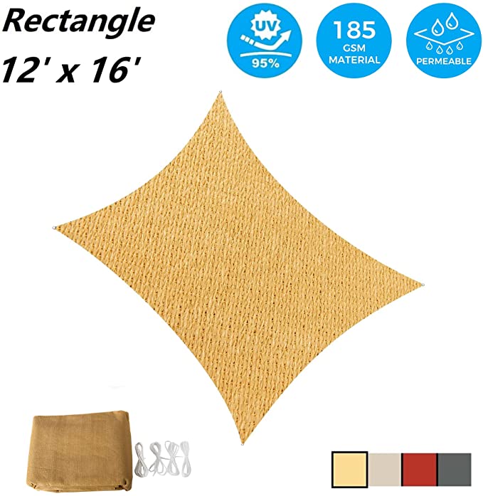 12' x 16' Rectangular Sun Shade Sail UV Block Canopy for Outdoor,Sand