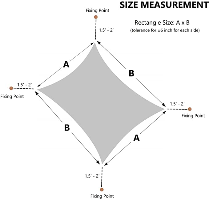 Easy to Use - Attach the shade sail D-rings to your structure with the included ropes. Four 5-feet ropes and an instruction sheet come in the package. Measurement is taken from D ring to D ring, Leave an 1.5-2 ft space between the fixing point and the shade sail to fit hardware or rope.