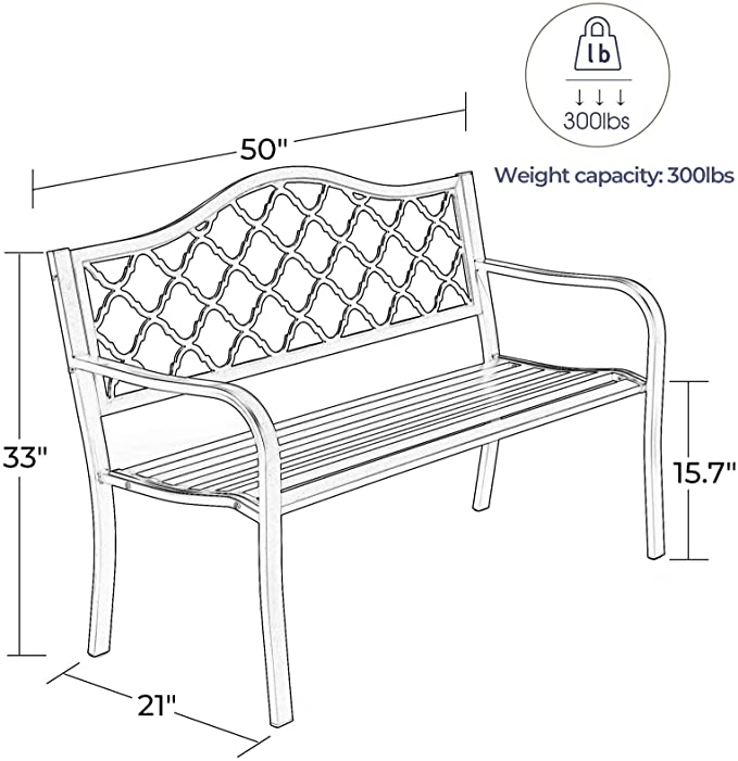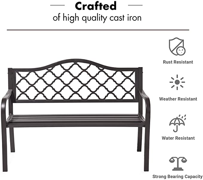 50" Outdoor Patio Bench Patio Furniture Chair for Porch Park Garden