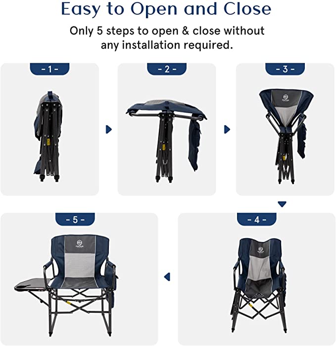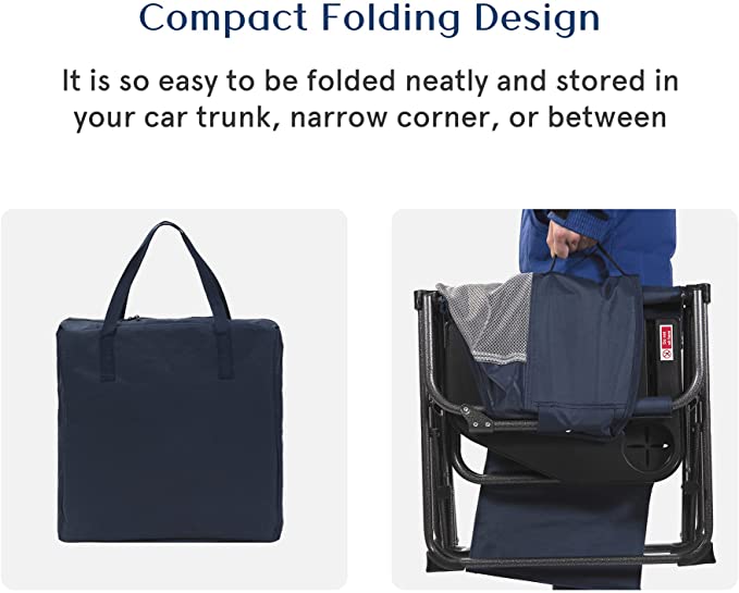 Camping Chair Portable Folding Chair Directors Chair with Large Side Table & Storage Bag Outdoor Camp Chair Blue