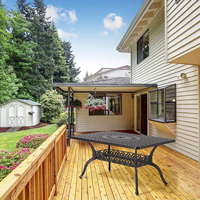 Dining Table with 1.97" Umbrella Hole for Lawn Garden Backyard
