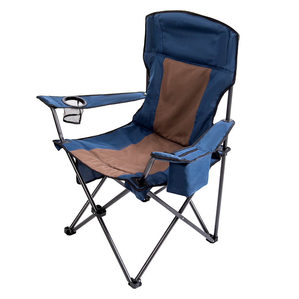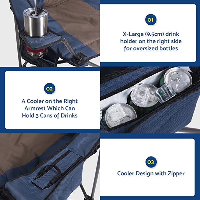 Folding Camping Chair with Large Cup Holders & Cooler , Black+Grey