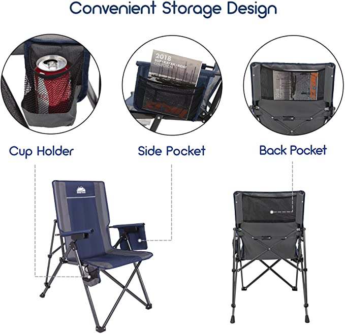 3 recline angle adjustable; With cup holder and side pocket; Product weight: 12lbs; Weight capacity: 300 lbs; Product size: 21.6"W x 17.3"D x 40.5"H; Seat height from floor: 17.7"