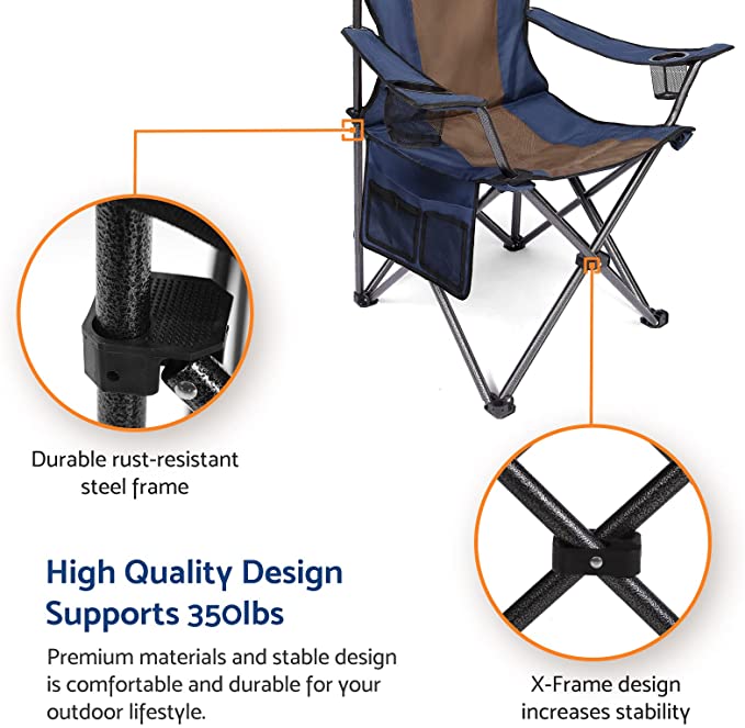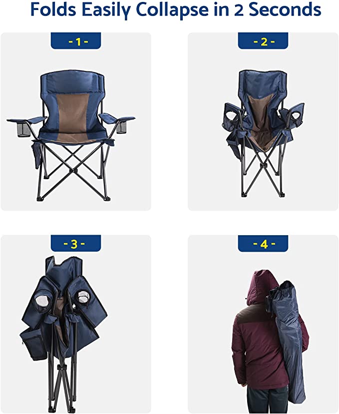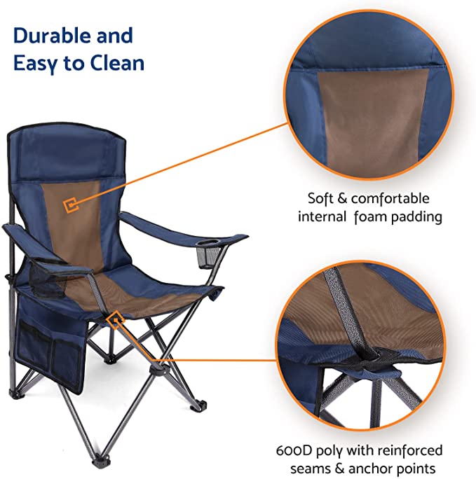 Outdoor Padded Folding Camping Chair Lawn Chair with Cup Holder,Black+Grey