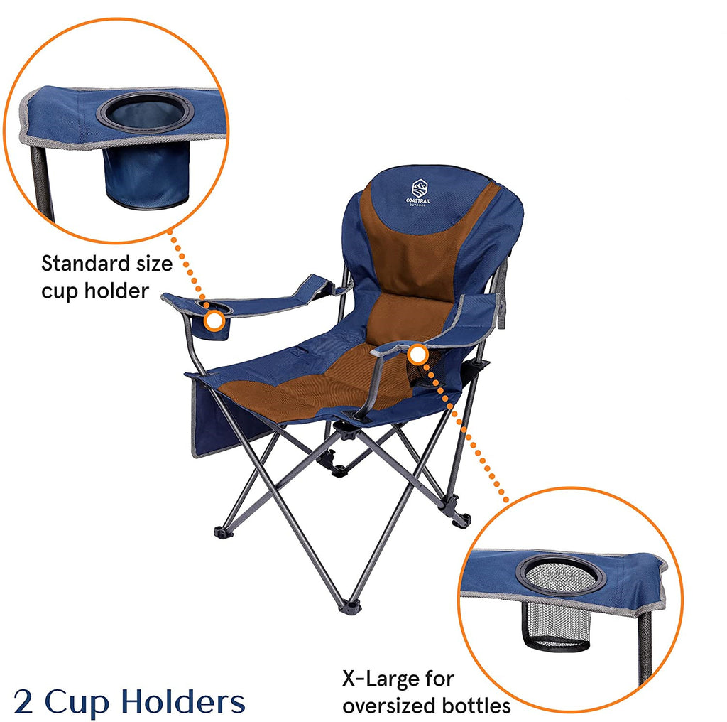 Outdoor Reclining Camping Chair 3 Position Folding Lawn Chair Supports 350 lbs, Black & Grey