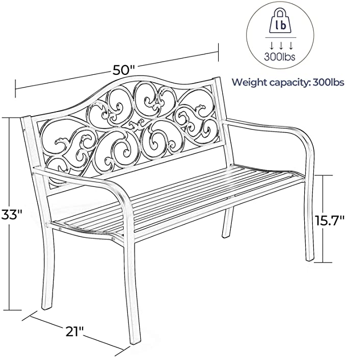 Specifications : Weight: 31 Pounds Chair: 50L x 21W x 35H inches Seat height: 17 inches Seat width: 47 inches Seat depth: 16 inches Color: Dark Brown