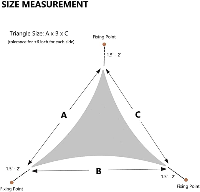 Easy to Use - Attach the shade sail D-rings to your structure with the included ropes. Three 5-feet ropes and an instruction sheet come in the package. Measurement is taken from D ring to D ring, Leave an 1.5-2 ft space between the fixing point and the shade sail to fit hardware or rope.